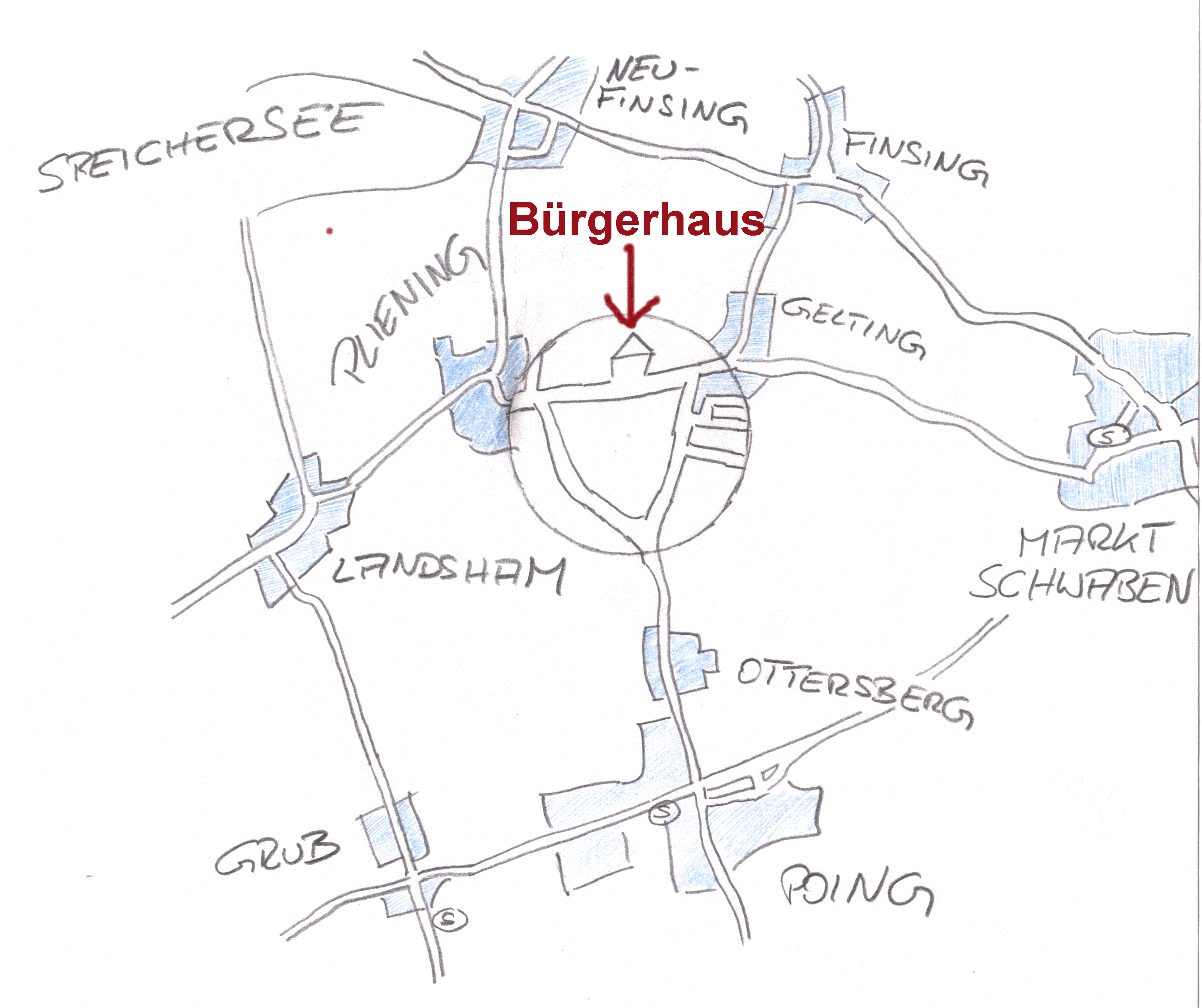 | Mit dem Bus der Linie 463 von Markt Schwaben aus und dem Bus der Linie 460 von Poing aus erreichen Sie die Haltestelle "Neufarner Straße", die nur wenige Minuten Fußweg vom Bürgerhaus Pliening entfernt liegt. |